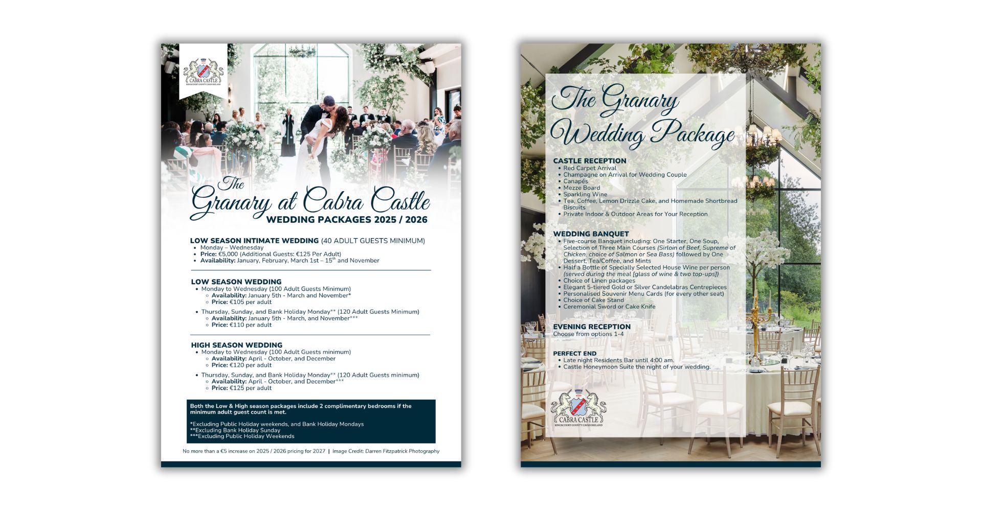THE GRANARY AT CABRA CASTLE - WEDDING PACKAGES 2025/2026